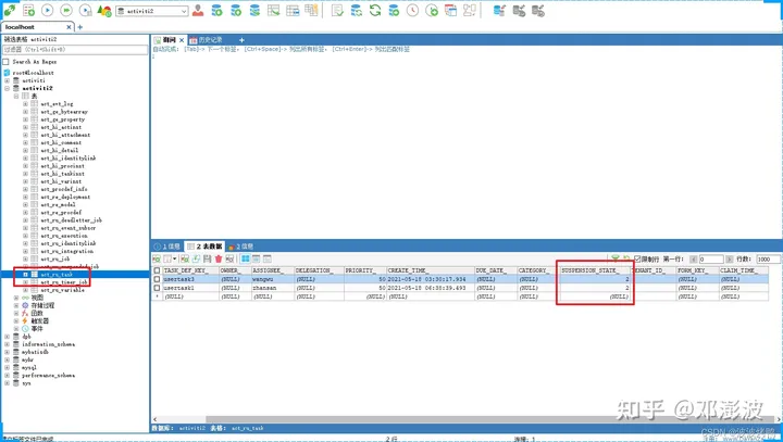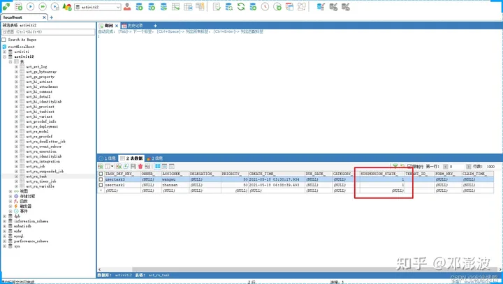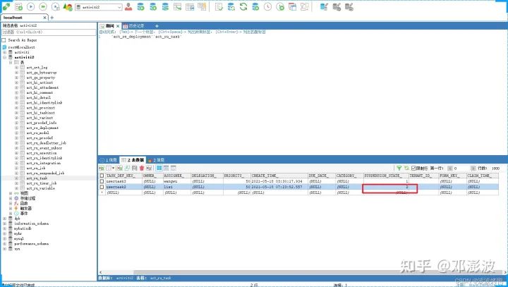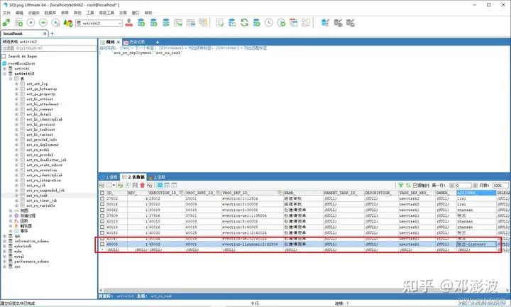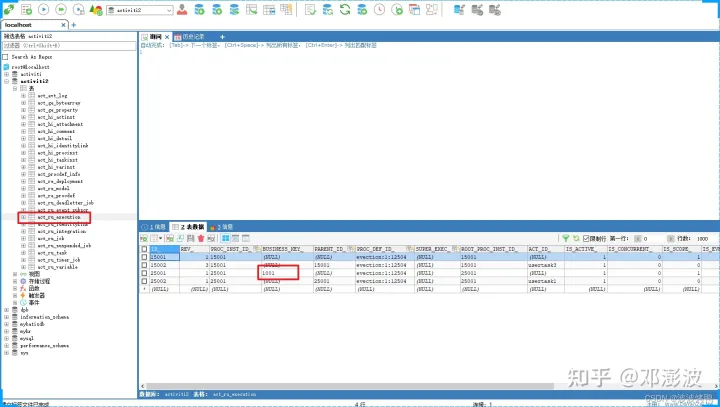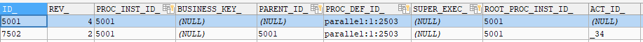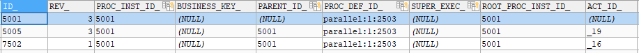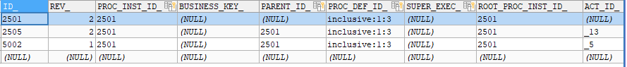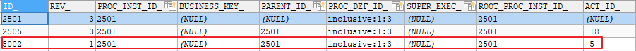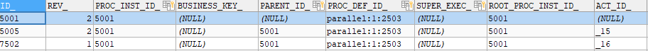 查询流程实例执行表:SELECT * FROM act_ru_execution