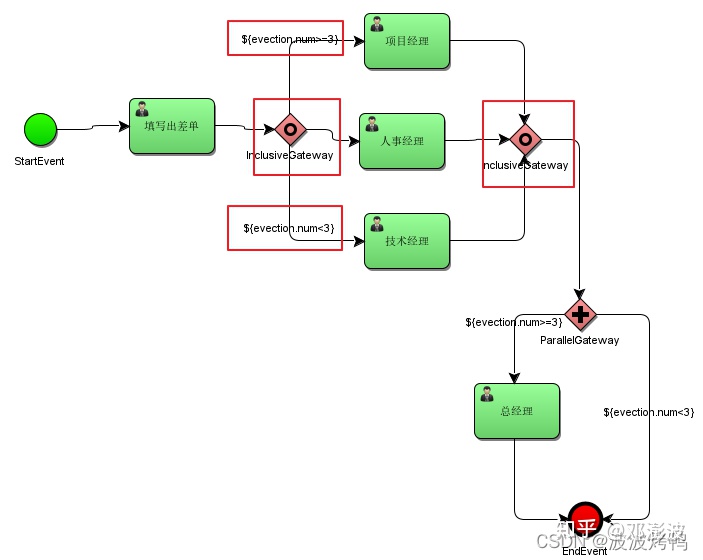 待技术经理和项目经理任务全部完成,在汇聚点汇聚,通过parallelGateway并行网关。
