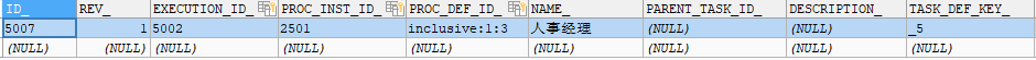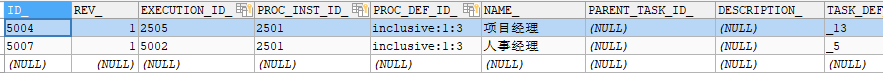 发现人事经理的分支还存在,而项目经理分支已经走到ACT_ID = _18的节点。而ACT_ID=__18就是第二个包含网关