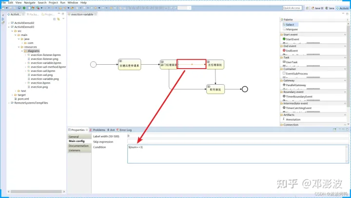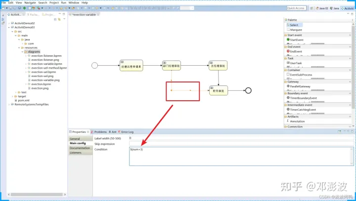 org.activiti.engine.ActivitiException: Unknown property used in expression: ${evection.num>=3}需要在流程启动时设置流程变量evection.num。