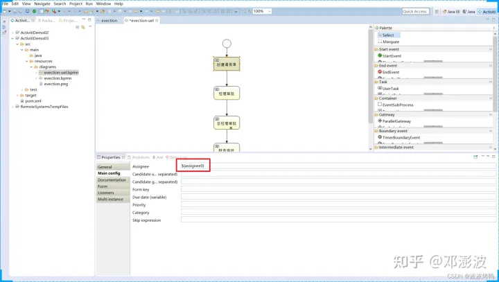 }部署成功后我们需要启动一个新的流程实例,然后在流程实例创建的其实关联UEL表达式