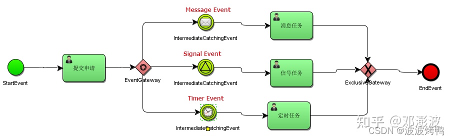 - 事件网关后,只能使用intermediateCatchEvent类型(activiti不支持基于事件网关后连接ReceiveTask)
