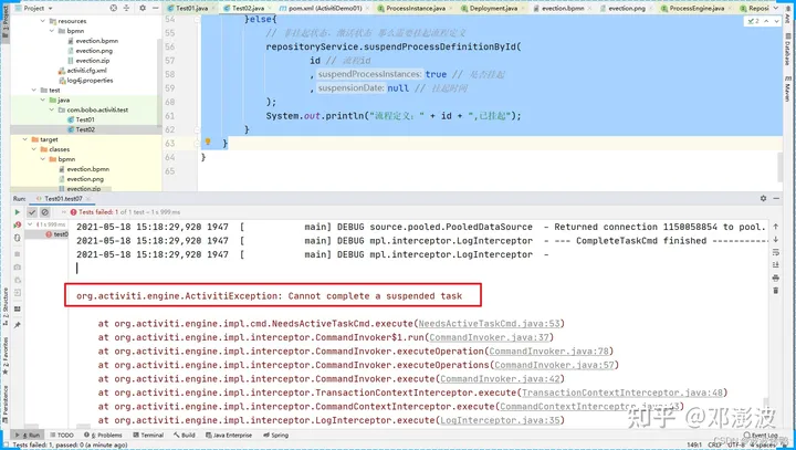 在实际场景中可能由于流程变更需要将当前运行的流程暂停而不是删除,流程暂停后将不能继续执行。
